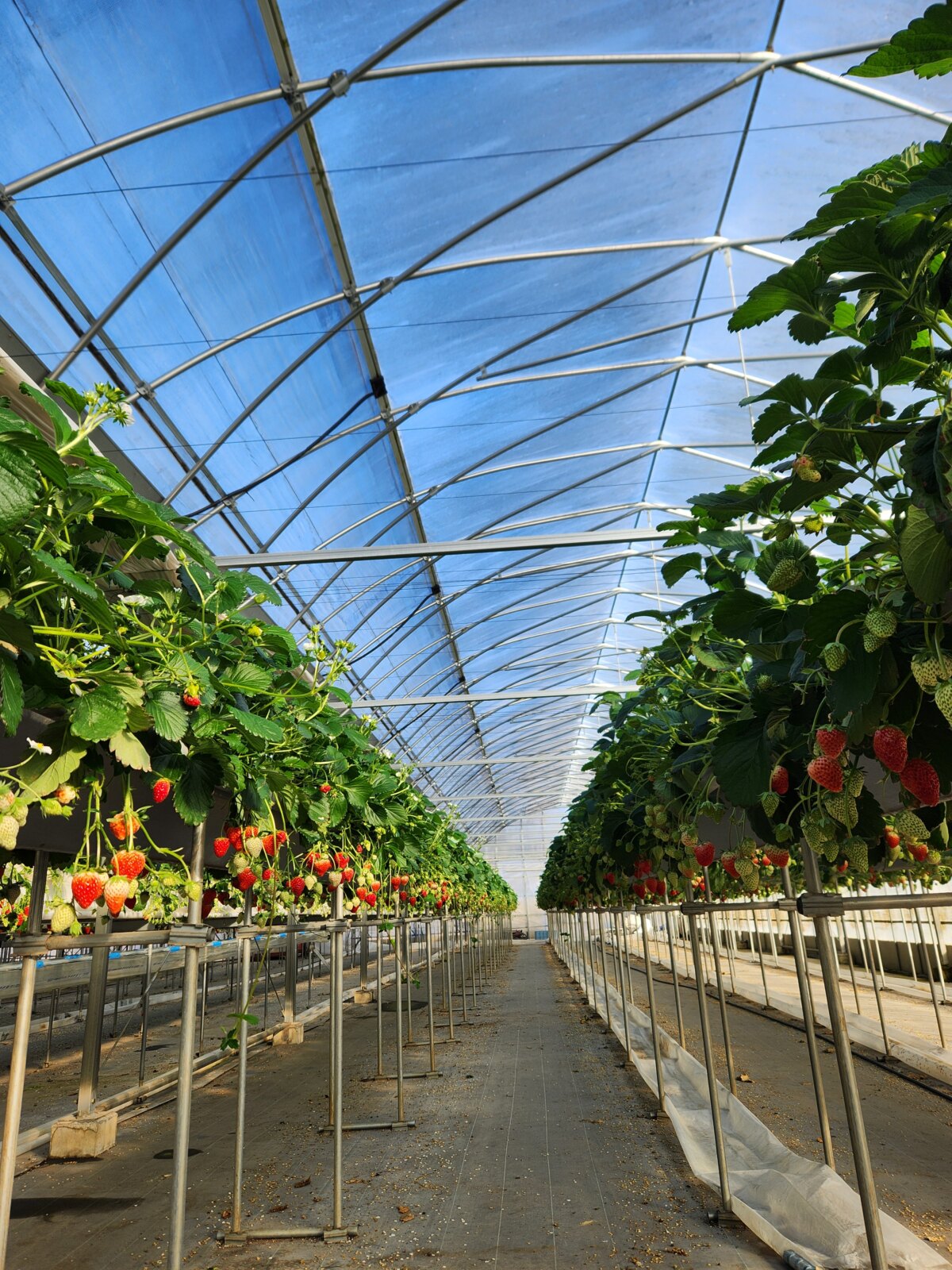 栽培区画の通路が広いため、車いすやベビーカーでもいちご狩りができるのはうれしいですね☆