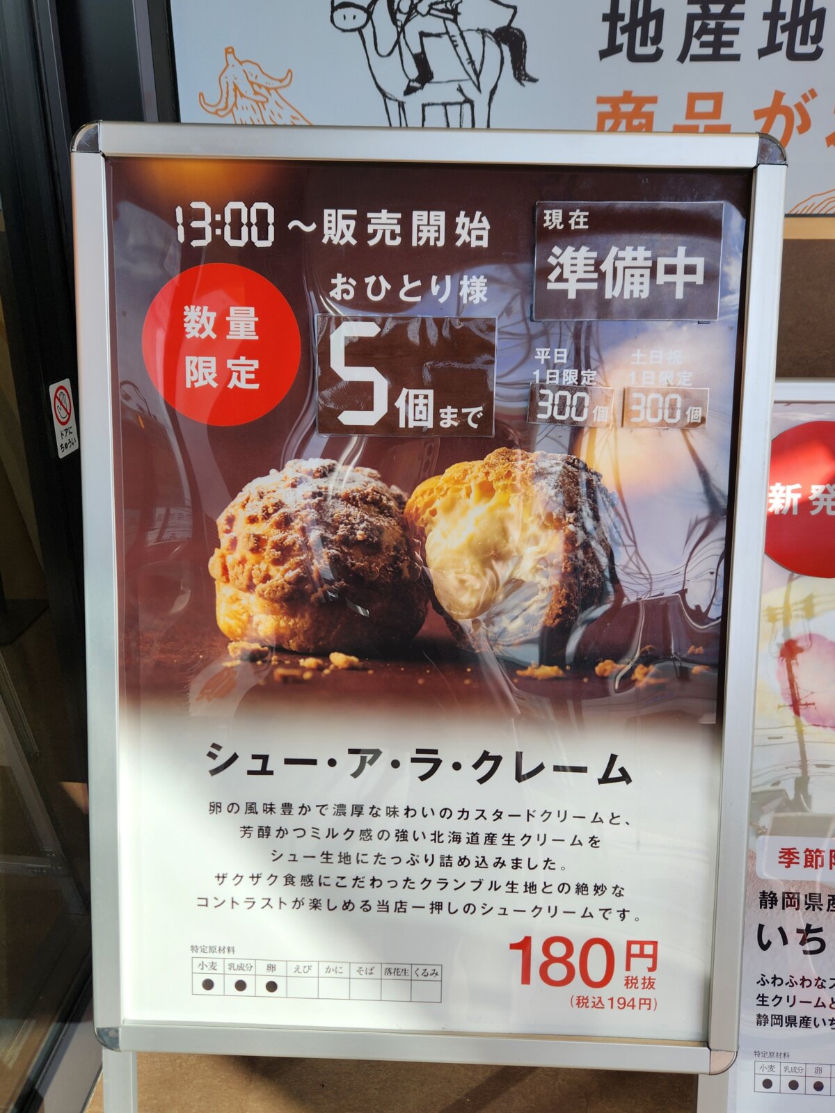 販売時間や個数が限定されて販売される「シューアラクレーム」。