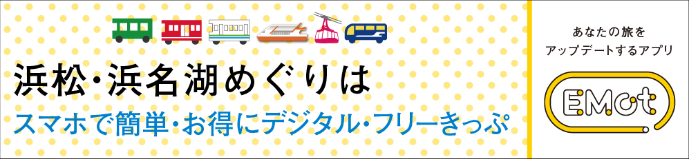 遠鉄電車・バス、天竜浜名湖鉄道、浜名湖遊覧船、 湖上を渡る日本唯一のロープウェイなどが 期間中乗り放題のデジタル周遊券を各種ご用意しています。
