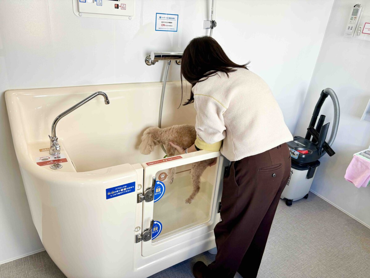 K・DogSpaは、2025年2月現在、大阪府を中心に全国に10店舗展開している完全無人型のドッグスパで、愛犬と一緒にゆったりとシャンプータイムを楽しめます。
