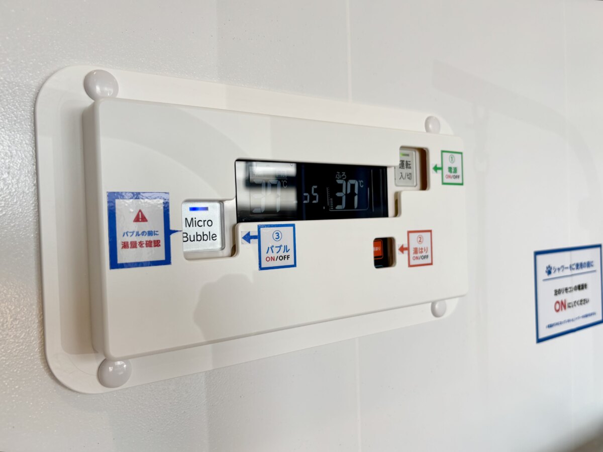 掲示されているガイドに従って、電源を入れて湯はりのスイッチをオン。