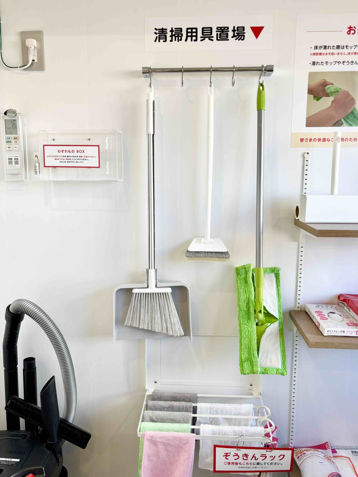 壁に使い方が掲示してあり、動画での案内も流れていました。備品も揃っています!