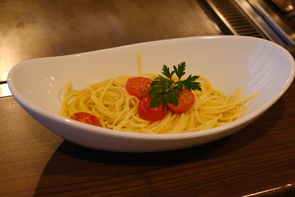 なんと、この「ムール貝とアサリの白ワイン蒸し」には、残ったスープを使ってパスタを作ってもらえるサービスがついています。もちろん、私たちもお願いしました!