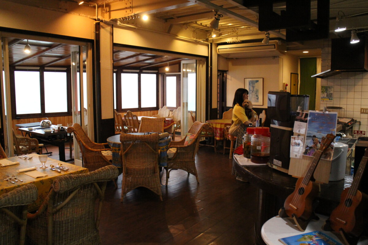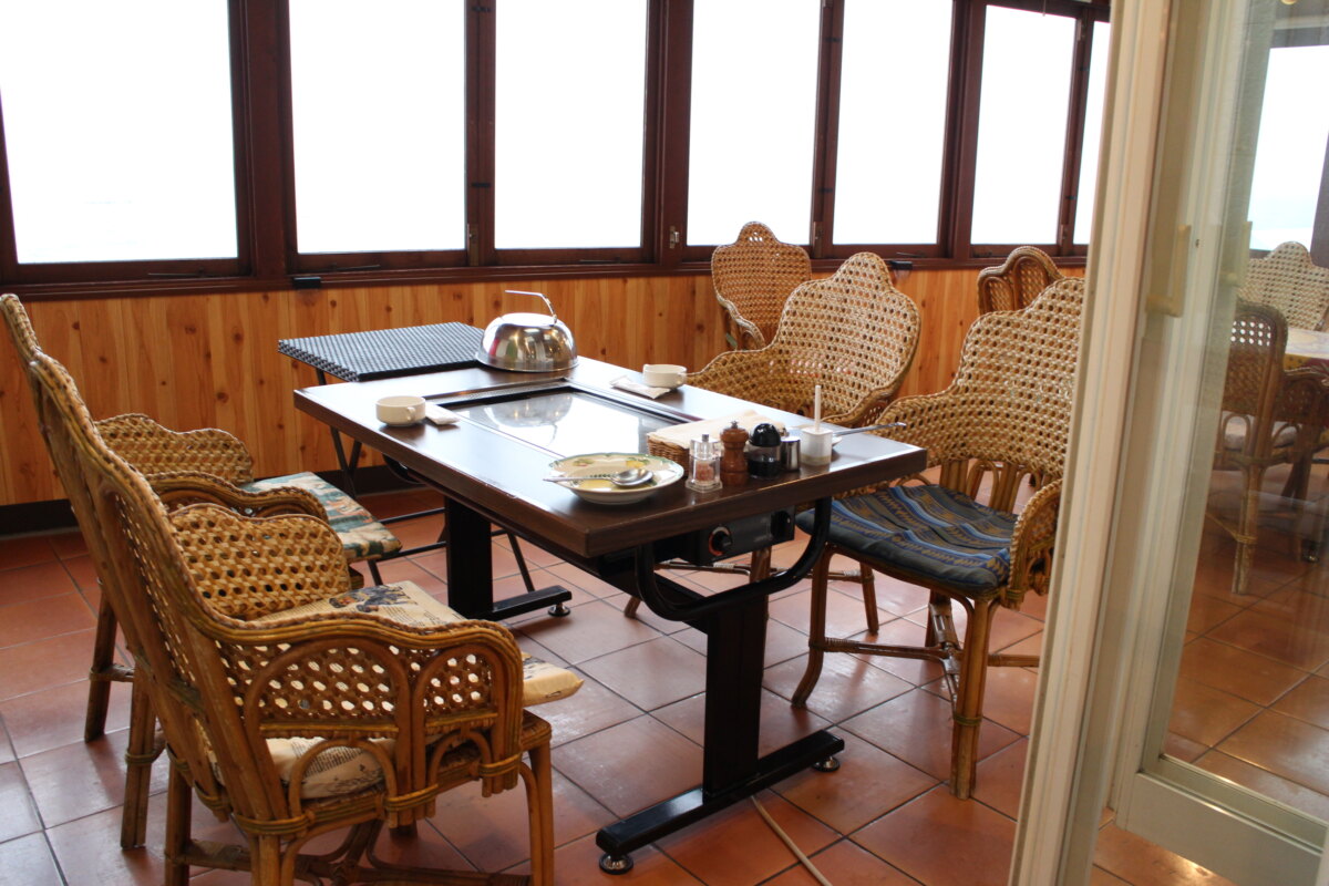 レストランには、レイクビューの窓際席と、ゆったりした屋内席の合計7席があります。
