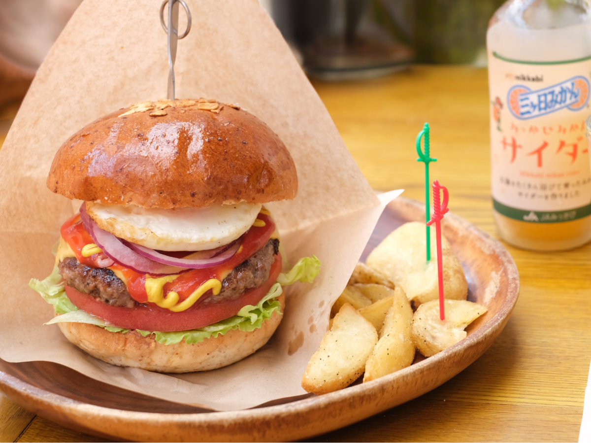 グラニーズバーガーの看板メニューは、地元ブランド牛を100%使った「三ヶ日牛バーガー」。