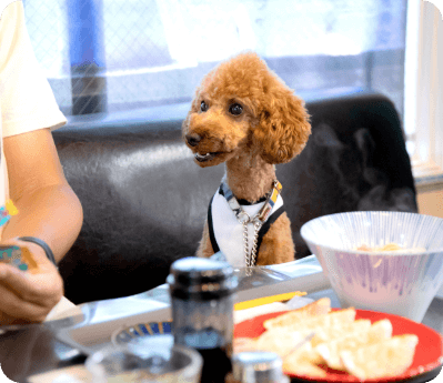 お食事や宿泊できる施設もあります!一緒にアクティビティを楽しんだ後は、ペットと一緒にお食事したり、お泊りをしたり!